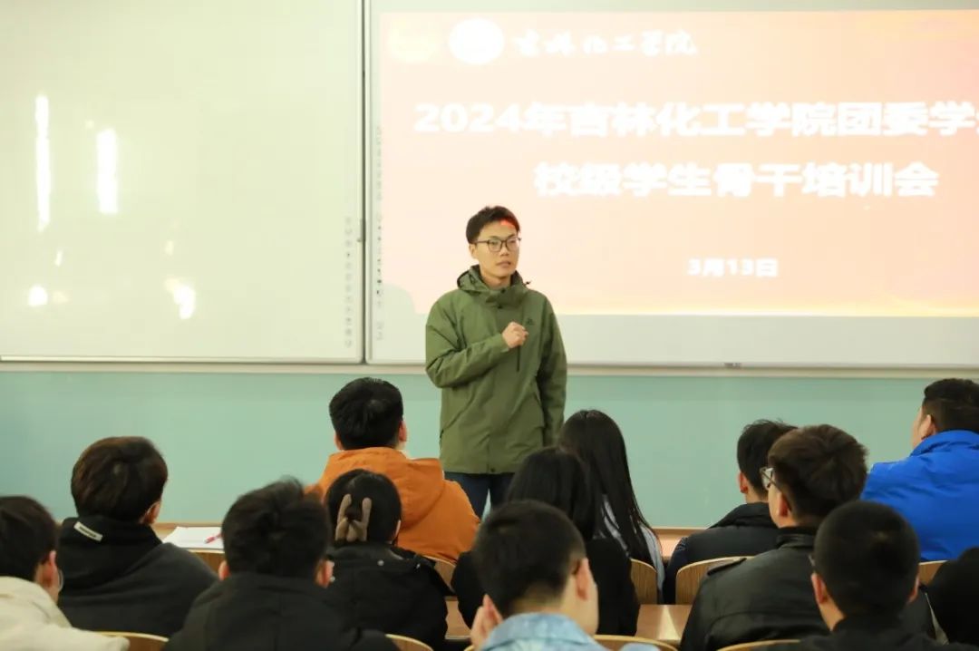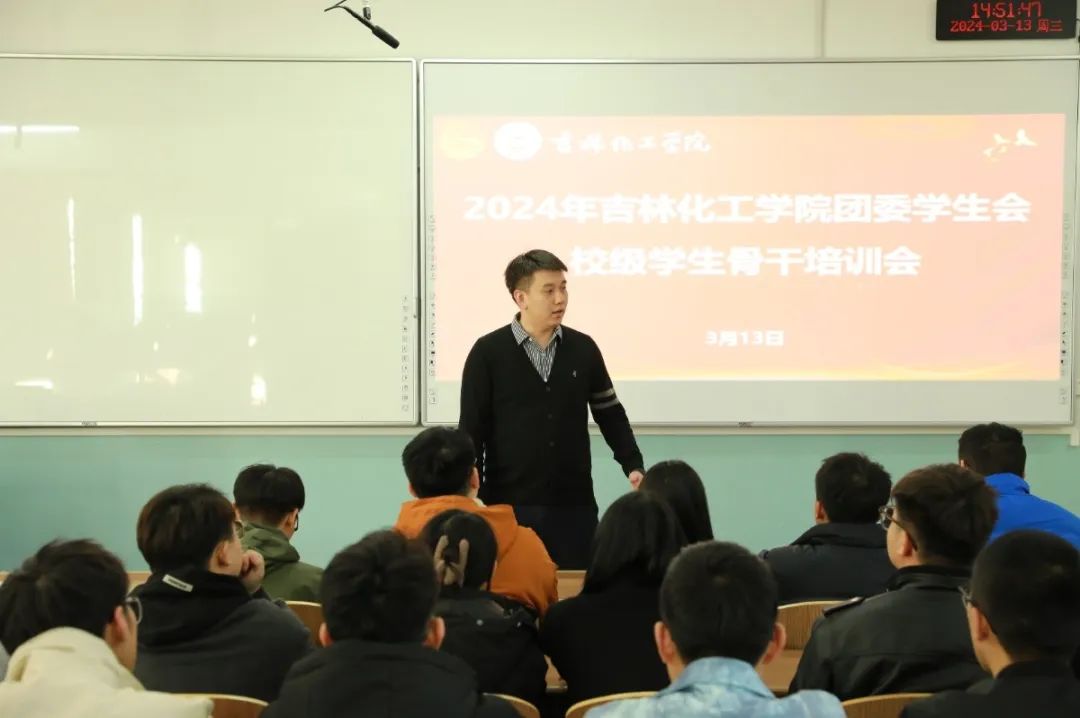 2024年3月13日下午两点半,吉林化工学院召开2024年团委学生会第一次校级学生骨干培训会。会议伊始,钱思宇老师对上一年团委学生会的工作做了简单的总结,对学生骨干过去一年的辛勤付出和优异的工作成果表示了肯定,安排部署了新学期共青团的相关工作。随后,侯宝栋老师以身边经历为例,生动形象地就学生干部的实干精神向参会同学建议,希望学生骨干端正工作态度,真正做到在其位谋其职,始终跟随学校团委的步伐,保持先进性,持续发挥引领作用,能够透过现象看本质,努力开拓创新,提高自身综合素质,紧抓机遇,立足学校发展,真抓实干,力争做一支有高度、有温度、有力度的学生团队。