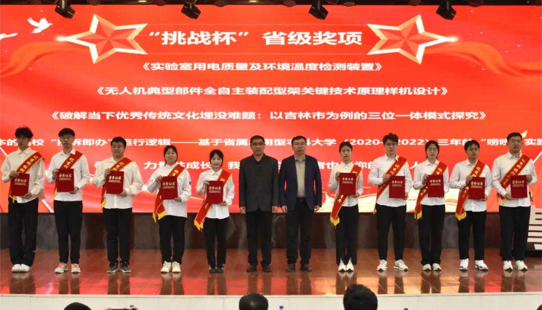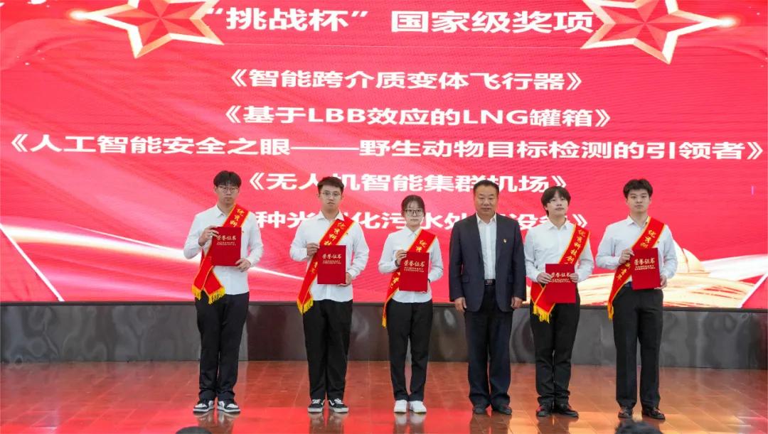 2024年5月11日下午,我校隆重举办2023年度“挑战杯”荣誉奖项表彰大会。在本次会议中,我校领导高度肯定我校学子在去年的“挑战杯”比赛中所取得的优秀工作成果,并为我校取得“挑战杯”国家级及省级奖项的团队代表进行颁奖。