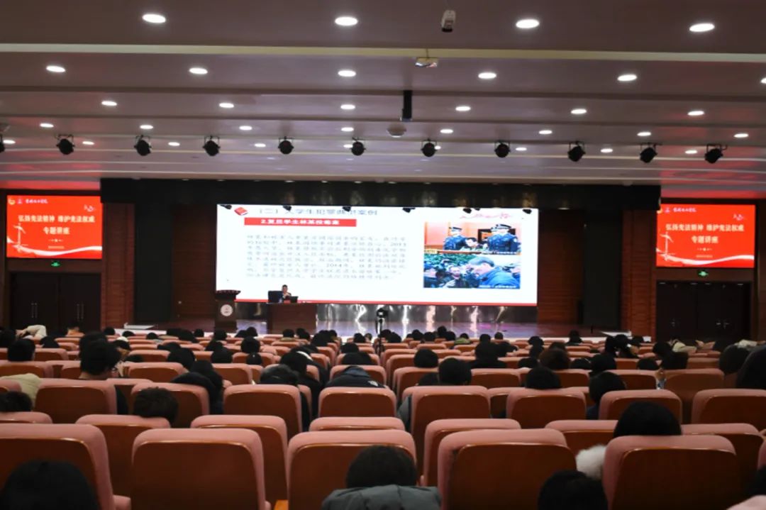 2024年12月4日,值此第十一个国家宪法日,我校团委联合校工会、校友会和关工委于二教报告厅召开“弘扬宪法精神,维护宪法权威”专题普法讲座。学校工会主席王丹、校友办主任隋新、关工委副主任杨为大、关工委秘书长张跃坤、校团委书记徐微微以及学校全体专职团干部和部分师生代表出席此次讲座。