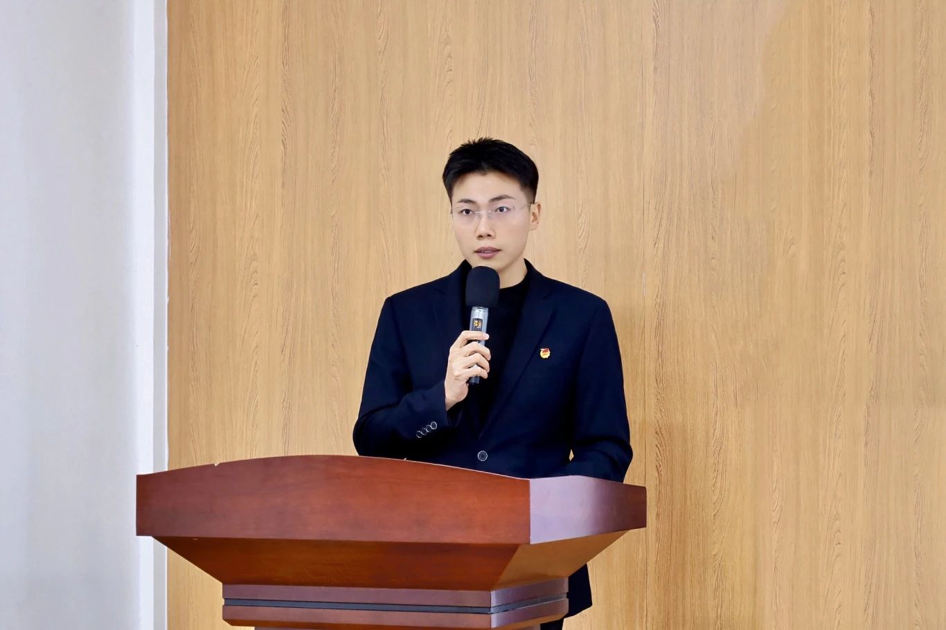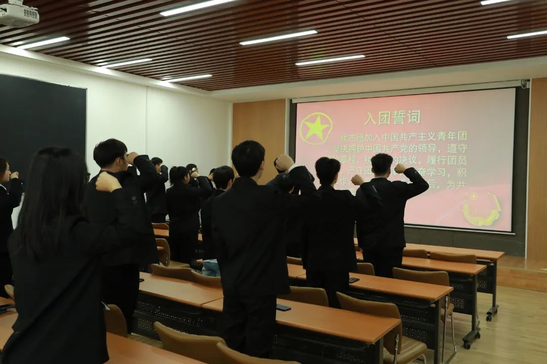 纪雄飞同学带领全体成员高举右拳,重温入团誓词:“我志愿加入中国共产主义青年团……”一声声铿锵有力的誓言激励着每一位青年学子不忘初心、牢记使命,彰显青年一代传承红色基因、勇担时代责任的坚定决心。