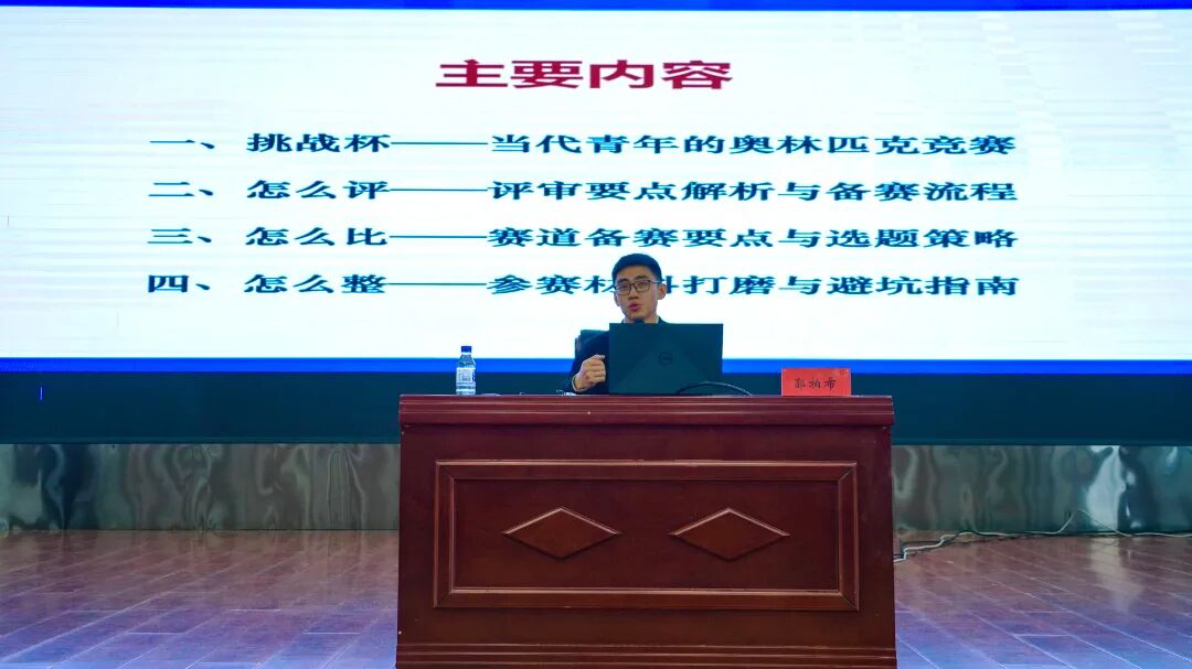 11月26日,学校团委于二教报告厅开展“以创新星火 燃强国征程”主题“挑战杯”竞赛培训交流活动。本次活动特邀2025年“挑战杯”国赛特等奖指导教师郭柏希、国赛二等奖指导教师李永涛亲临现场,为怀揣科创梦想的同学们传经送宝、答疑解惑。