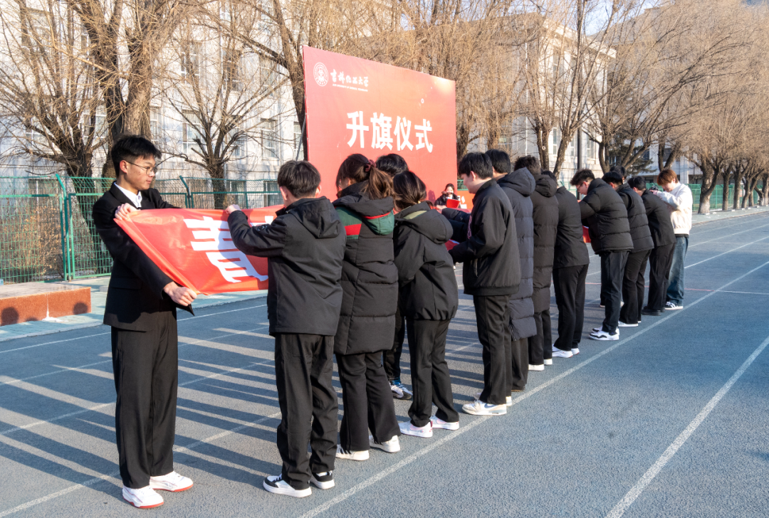 盛世逢盛会,青春正当时!值此大冬会开幕倒计时三百天的关键时刻,愿同学们以团结协作凝聚合力,以热情态度做好服务,以文明风采讲好吉林故事。全体学子将以国旗为证,投身服务大局,用实干与担当,为长春2027第33届世界大学生冬季运动会圆满举办贡献青春力量!
