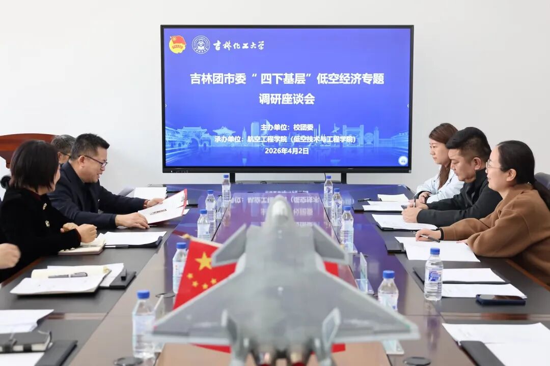 4月2日,吉林团市委在吉林化工大学丰满校区举行“四下基层”低空经济专题调研座谈会。团市委书记臧淑艳、团市委副书记周洋、团市委青年发展部部长程同亮、团市委办公室科员全信达、龙潭团区委书记翟子健、丰满团区委副书记汪娜及部分低空经济产业领域青年企业家代表一行到访。吉林化工大学航空工程学院(低空技术与工程学院)党政领导班子及部分青年博士教师参加座谈会。会议由吉林化工大学团委书记徐微微主持。