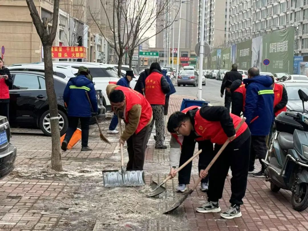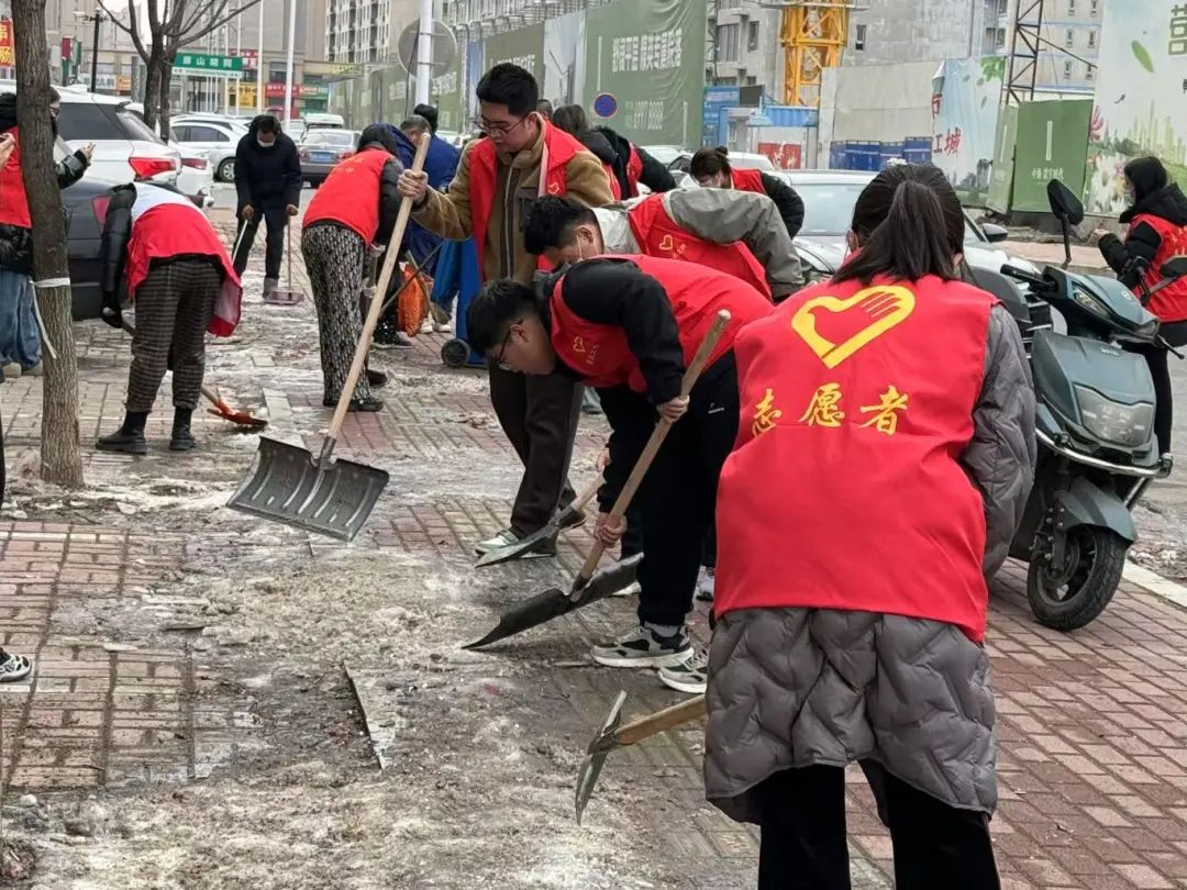 志愿者们携手环卫工人,投身于清除街道冰层的行动中。他们挥舞着铁锹,紧握扫帚,彼此间展现出默契无间的协作精神。一些志愿者专注于铲除堆积的厚雪,其余志愿者则细心清扫散落的碎冰。尽管寒风凛冽,气温骤降,但大家的热情却丝毫未减,干劲满满。