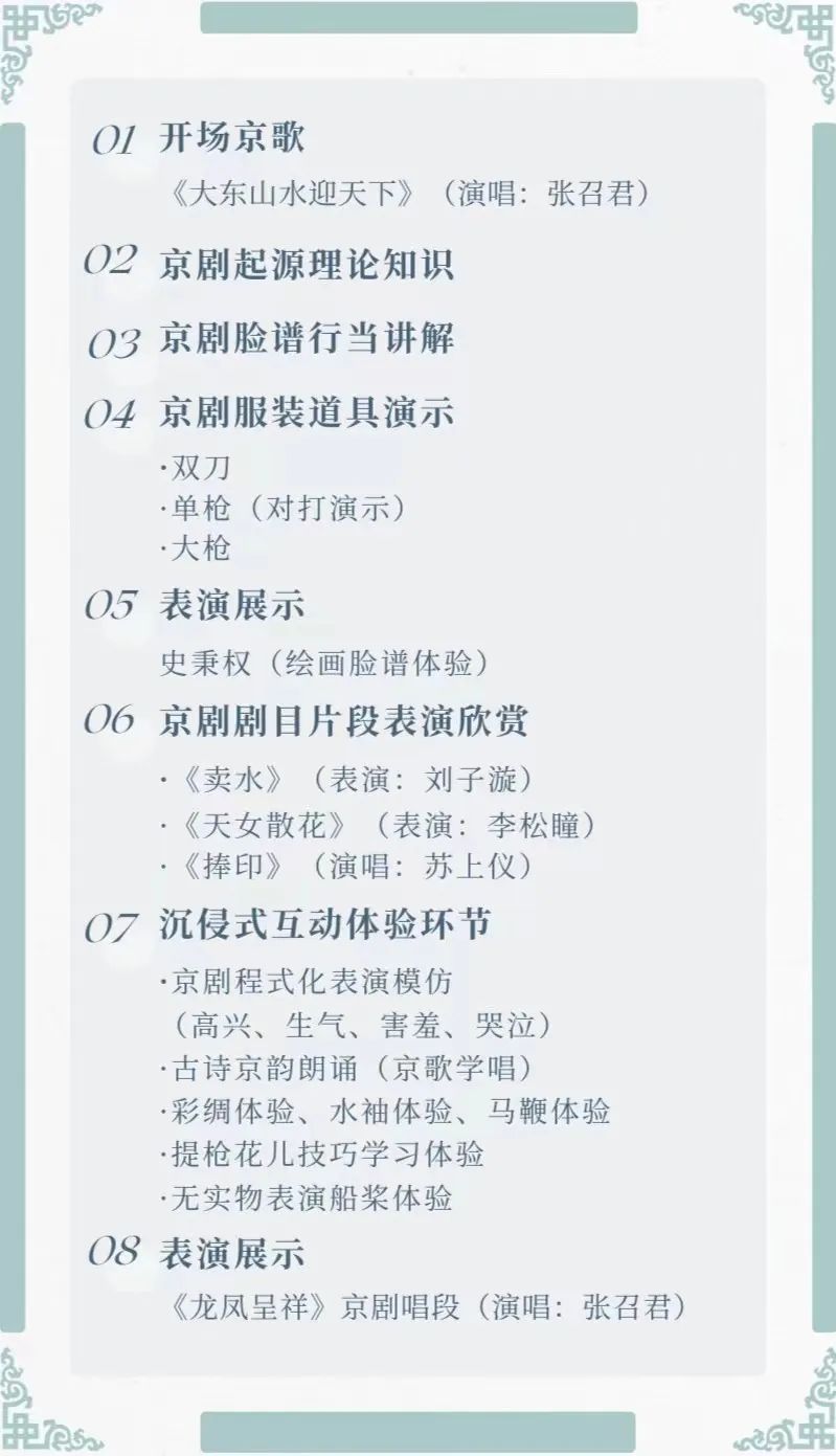 为深化学校美育教育,让传统文化走进校园,我校特邀请吉林市群众艺术馆京剧传承保护中心的演员和老师来校,开展高雅艺术之京剧进大学体验课,暨国粹传承,美育浸润——“品京剧魅力,树文化自信”京剧入校园活动。