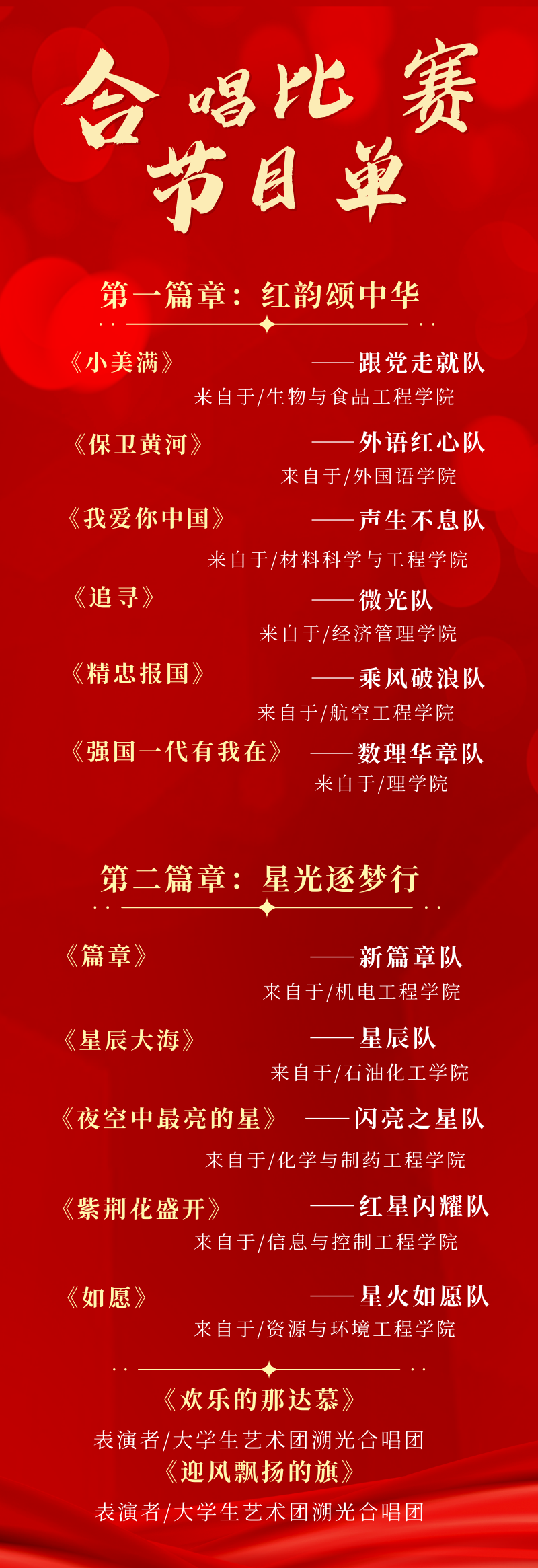 为纪念“一二·九”抗日救亡运动89周年,同时深化学校美育教育事业发展,推进大思政课建设,激发广大青年学生的责任感和使命感,立报国强国大志向,校团委组织各学院开展“薪火相传,歌盛世中华”主题合唱比赛,借红色歌曲铺就回溯之路,在放声歌唱中坚定强国信念,用青春赞歌抒发对党、对祖国的赤诚深情。